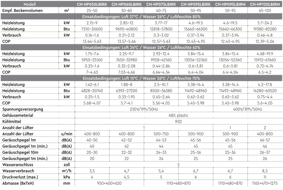 Verwendung: Schwimmbäder bis to 169 m3